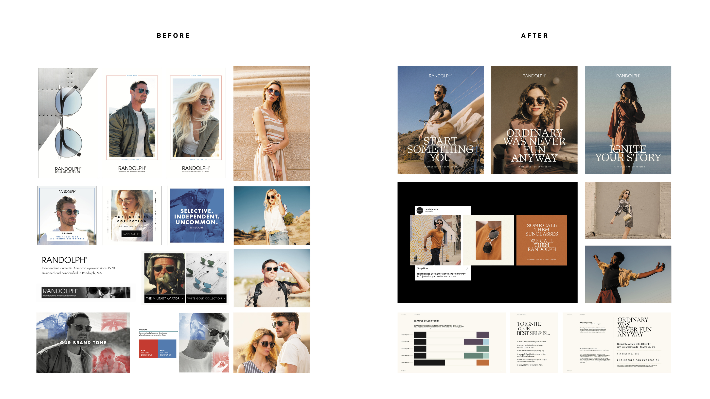 Randolph makes jewelry-quality sunglasses that have been meticulously crafted by hand, with a strong heritage making sunglasses for Military pilots, and cult following with men. When it was time to turn their attention to women, we leaned into a new trend in luxury: IYKYK. It’s no longer about mass lux but about niche brands and expressing your individuality. The new brand platform, Engineered for Expression, shines a light on when a perfectly designed pair of sunglasses meets their perfect owner—unlocking the inner courage and creativity of every wearer.